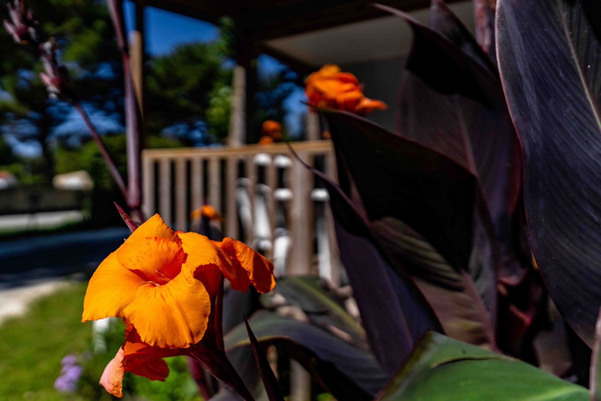 • Terrasse en bois couverte, salon de jardin.